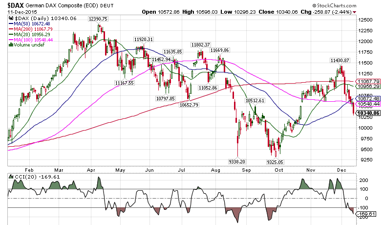 美股今天开市下跌并一直走跌到收市。收市时各大指数平均下跌约2.03%。道 指,纳指,标普500及罗素2000收市分别为17265.21 -309.54,4933.47-111.7,2012.37 -39.86及1123.61 -25.42。今天美股大跌的原因包括油价跌至7年新低,Carl Icahn称高息债券泡沫开始,人民币贬值到四年低位及下周联储决定加息与否令人担忧。其实联储下周无论加息与否对股市都或许是双输局面。在国外经济继续低迷的情况下加息会令情况更坏。不加息的话,给人的印象是联储或许对经济及全球情况还是没信心。今日大部分板块均下跌,下跌最多的板块有互联网FDN,社交网站SOCL,能源XLE,电讯IYZ,生物科技IBB,财务XLF,太阳能TAN及科技XLK。技术上,各大市场指数均有双顶形态,并且已跌穿它们的20,50及200天均线。图形真的很难看。美股趋势看跌。标普500下一支撑是2000。假如跌穿,会到1875。